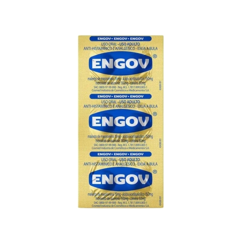 Engov é um medicamento composto por múltiplos princípios ativos que atuam em conjunto para o alívio de dores de cabeça, sintomas alérgicos, azia, náusea e mal-estar. Ele combina ação analgésica, anti-histamínica, antiácida e estimulante em um único comprimido de uso oral, indicado para adultos.