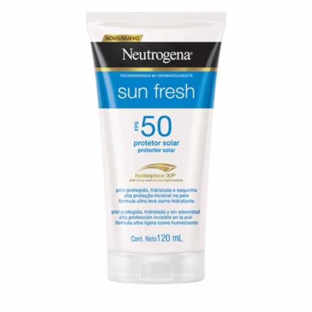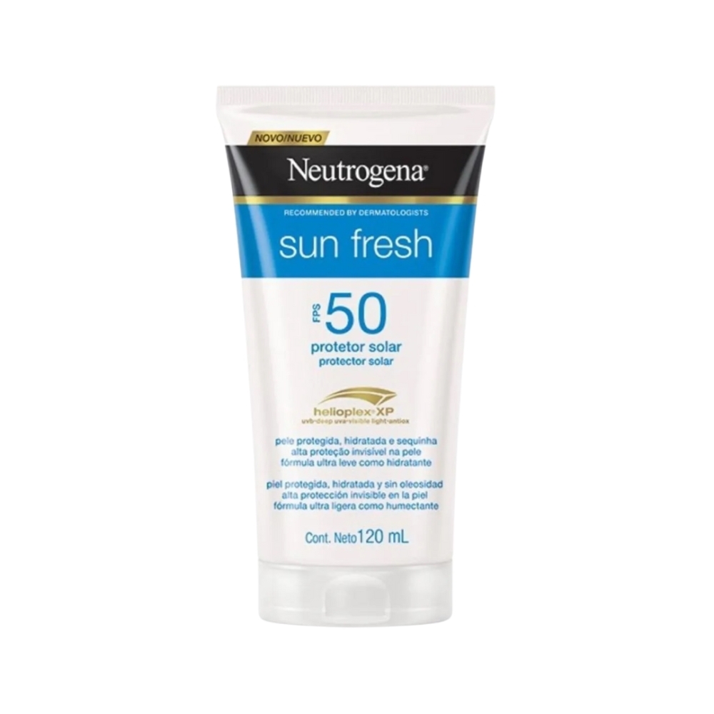 Descrição Geral O Protetor Solar Neutrogena Sun Fresh FPS 50 120 ml é um protetor solar corporal com fórmula ultraleve e de rápida absorção, desenvolvido para proporcionar alta proteção contra os raios UVA e UVB. Possui tecnologia Helioplex® XP, que ajuda a manter a pele protegida, hidratada e sequinha, com sensação fresca e invisível ao toque.