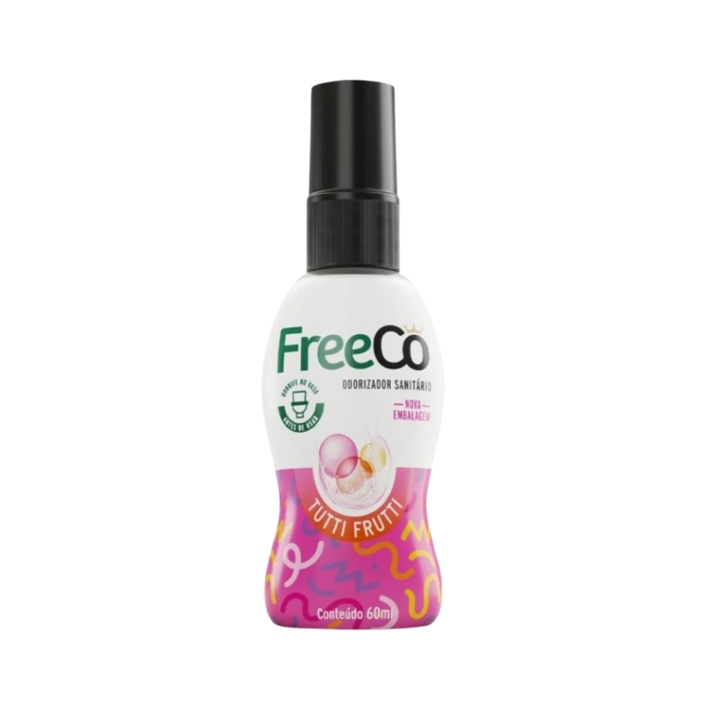 Descrição Geral FreeCô Tutti Frutti é o primeiro bloqueador de odores sanitários do Brasil, desenvolvido para eliminar definitivamente o mau cheiro do nº2. Ele cria uma película protetora na superfície da água do vaso sanitário que neutraliza os odores antes mesmo que sejam percebidos. Com fragrância agradável de tutti frutti, proporciona uma experiência de frescor e limpeza no ambiente.