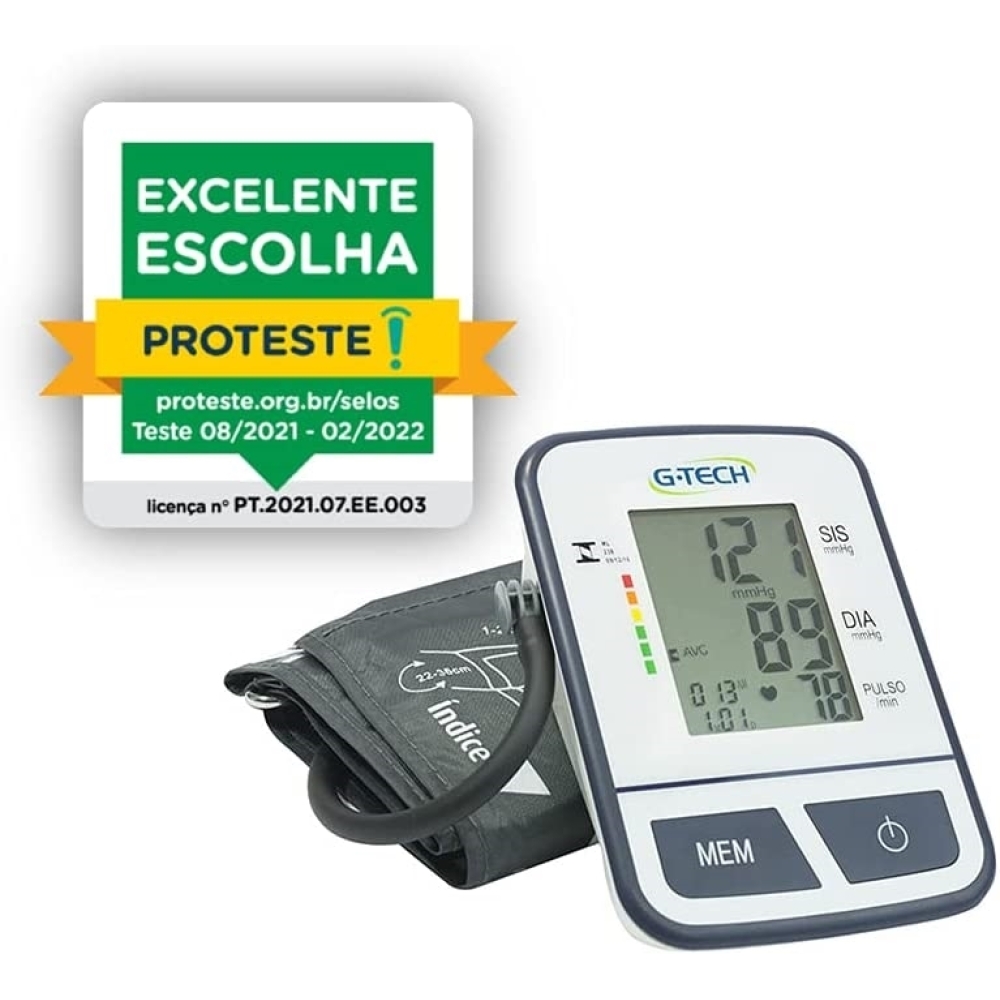 Aparelho de pressão Digital Automático de Braço BPS11 G-TechO novo Aparelho de Pressão Digital Automático de Braço G-Tech Home BSP11 é uma solução completa para medição da pressão arterial.Além das medições tradicionais de pressão arterial e frequência cardíaca, possui uma série de outros benefícios, como: Memória para 120 resultados, indicador de arritmia cardíaca, indicador gráfico de nível de hipertensão e o cálculo da média automática das três últimas medições.Todas essas funções permitem um acompanhamento completo dos níveis de pressão arterial, sempre contando com a qualidade e segurança da marca G-Tech, que oferece uma garantia de 5 anos, assegurando tranquilidade por um período estendido.- Medição de Pressão Arterial e Frequência Cardíaca- Detecção de Arritmia Cardíaca- Indicador Gráfico de Nível de Hipertensão- Média Automática das 3 últimas Medições- 120 Memórias com Hora e Data- Totalmente automático- Medição no braço- 5 Anos de garantia- Bolsa para transporte e pilhas incluídos