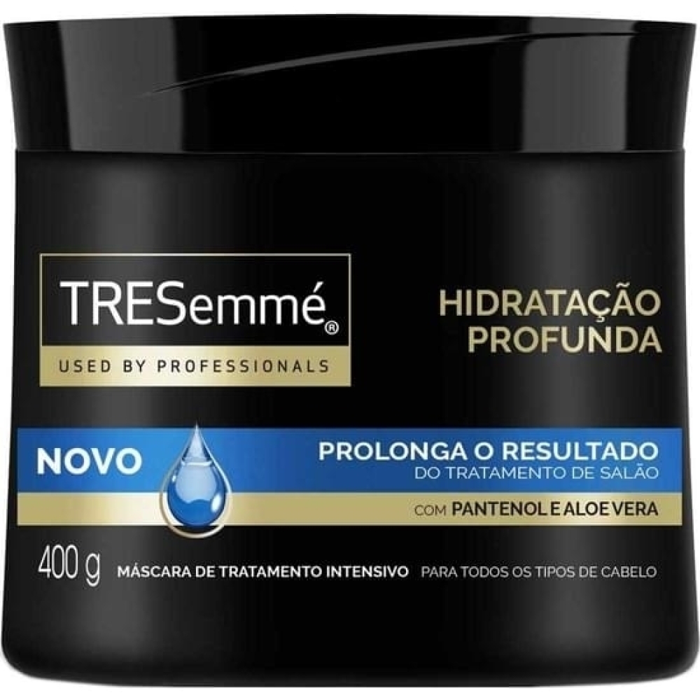 Máscara de Tratamento com Biotina e Pantenol Tresemmé Pro-Hidratação Ativa Pote 400g A nova Máscara de Tratamento Intensivo Tresemmé Hidratação Profunda hidrata e restaura a maciez dos fios, sem deixar o cabelo pesado. Desenvolvida com a exclusiva tecnologia TRES-ComplexTM que desembaraça os fios facilmente, ajuda a controlar o frizz e prolonga o resultado do tratamento de salão. Fórmula enriquecida com Pantenol e Aloe Vera. A linha Tresemmé Hidratação Profunda é ideal para todos os tipos de cabelo que precisam de um boost de hidratação e maciez. Recomenda-se utilizar a Máscara de Tratamento Intensivo Tresemmé Hidratação Profunda uma vez por semana e pode ser utilizada na etapa de Hidratação do cronograma capilar. Indicada para todos os tipos de cabelo. A nova Máscara de Tratamento Intensivo Tresemmé Hidratação Profunda hidrata e restaura a maciez dos fios, sem deixar o cabelo com aquele aspecto pesado. Ela foi profissionalmente desenvolvida com a exclusiva tecnologia TRES-Complex que ajuda a controlar o frizz e desembaraça os fios de uma maneira muito fácil, além de prolongar o resultado do tratamento feito no salão. Além disso, sua fórmula é enriquecida com Pantenol e Aloe Vera e dá um boost de hidratação e maciez aos cabelos. É recomendado usar essa máscara uma vez por semana e ela também pode ser utilizada na etapa de Hidratação do cronograma capilar. Garanta já a sua máscara de tratamento intensivo Tresemmé!