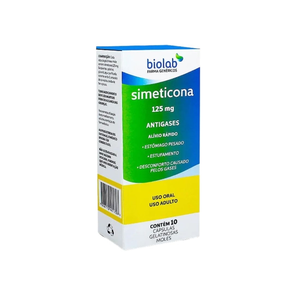 Simeticona 125mg 10 cápsulas gelatinosas G/ Biolab É UM MEDICAMENTO. SEU USO PODE TRAZER RISCOS. PROCURE O MÉDICO E O FARMACÊUTICO. LEIA A BULA. SE PERSISTIREM OS SINTOMAS, O MÉDICO DEVERÁ SER CONSULTADO.