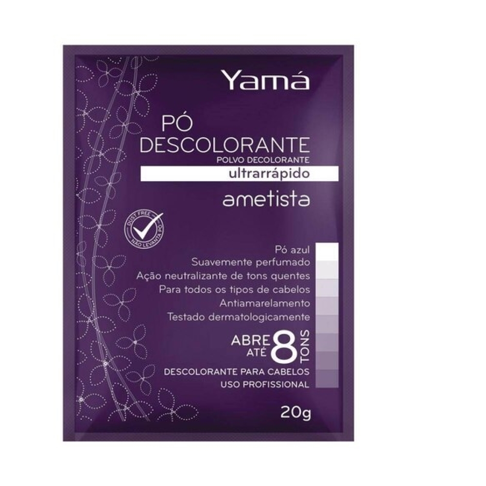 O Pó Descolorante Yamá Ametista é indicado para descolorir e neutralizar os tons dourados e acobreados da descoloração. Sua formulação inovadora é composta por uma mistura de pigmentos violetas e micropartículas de cristais de ametista que neutralizam os tons quentes de dourado e cobre; melhorando a aparência e o brilho dos cabelos.