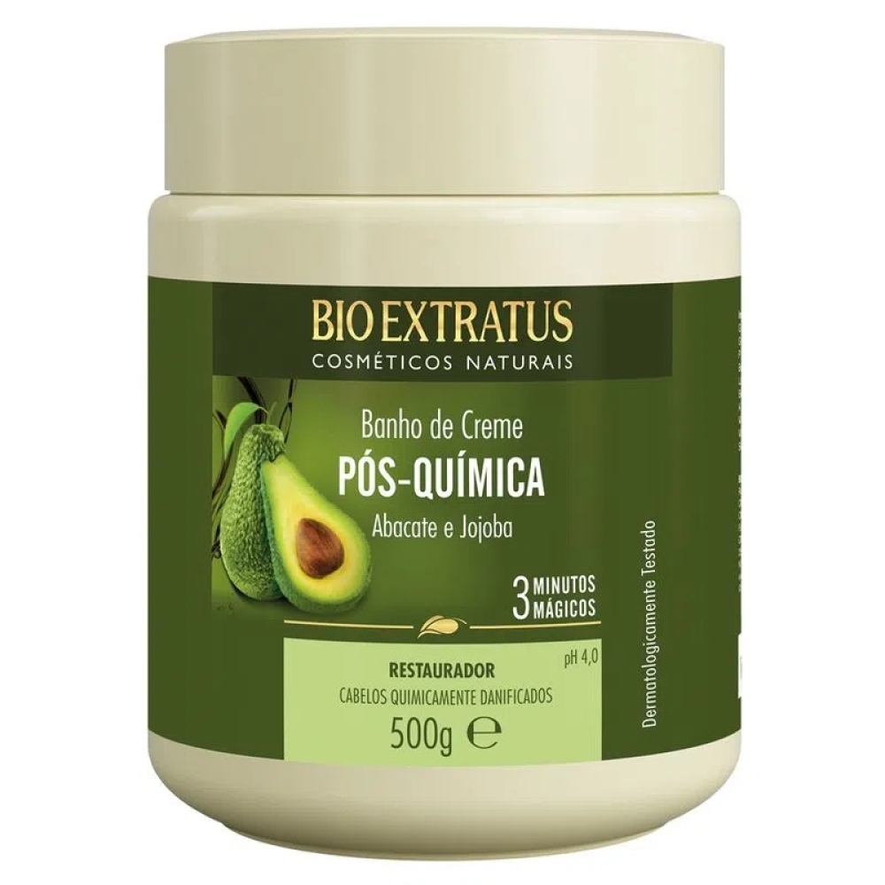 O Banho De Creme Bio Extratus Pós Química Abacate foi desenvolvido com fórmula altamente nutritiva, recuperando seus cabelos dos danos das químicas, com ativo de abacate que é antioxidante ativando a circulação sanguínea e ajudando no crescimento do cabelo, além de contem Jojoba que controla a oleosidade do couro cabeludo, e proporciona hidratação sem deixar oleosidade.