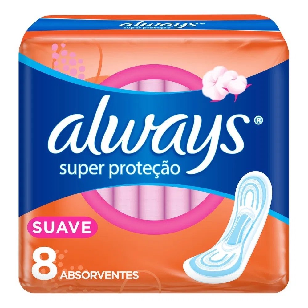 Sinta-se limpa e confortável com o novo Always Super Proteção com formato anatômico, desenhado para a mulher brasileira, que se adapta ao seu corpo e calcinha, mantendo a umidade longe da sua pele. Formato Anatômico que se adapta ao seu corpo Cobertura antiumidade Barreiras Antivazamentos Centro Anatômico de Absorção Cobertura Suave como algodão Formato adaptável que absorve onde o seu corpo mais precisa. Com Abas Não contém fibras de algodão.