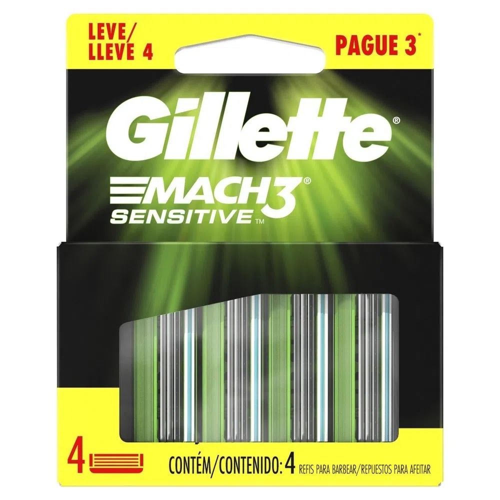 O Gillette MACH3 Sensitive contém 3 lâminas mais resistentes do que o aço projetadas para um barbear mais rente* sem vermelhidão. Seu décimo barbear com um MACH3 oferece uma sensação melhor do que o primeiro barbear com um aparelho descartável novo