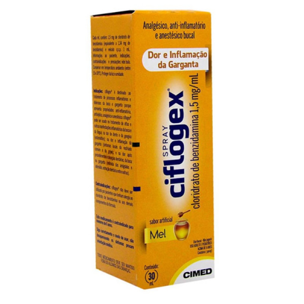 Use Ciflogex Spray 30 mL sabor mel para aliviar dor, inflamação e desconfortos bucais e de garganta - aplique diretamente sobre a área afetada conforme orientação e recupere o conforto da boca e garganta com eficácia e praticidade.