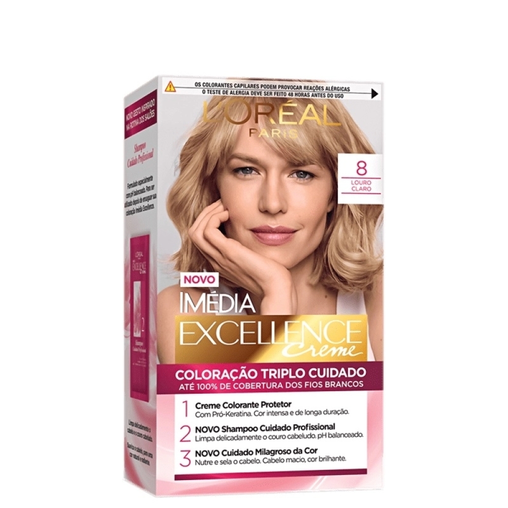 Coloração Imedia Excellence Creme apresenta triplo cuidado e proteção aos fios graças aos seus ativos reparadores, como a Pro-Keratina e Ceramida que fortalecem e restauram a saúde do cabelo. Perfeita para colorir intensamente, mudar seu visual e ainda oferecer um aspecto saudável aos fios.