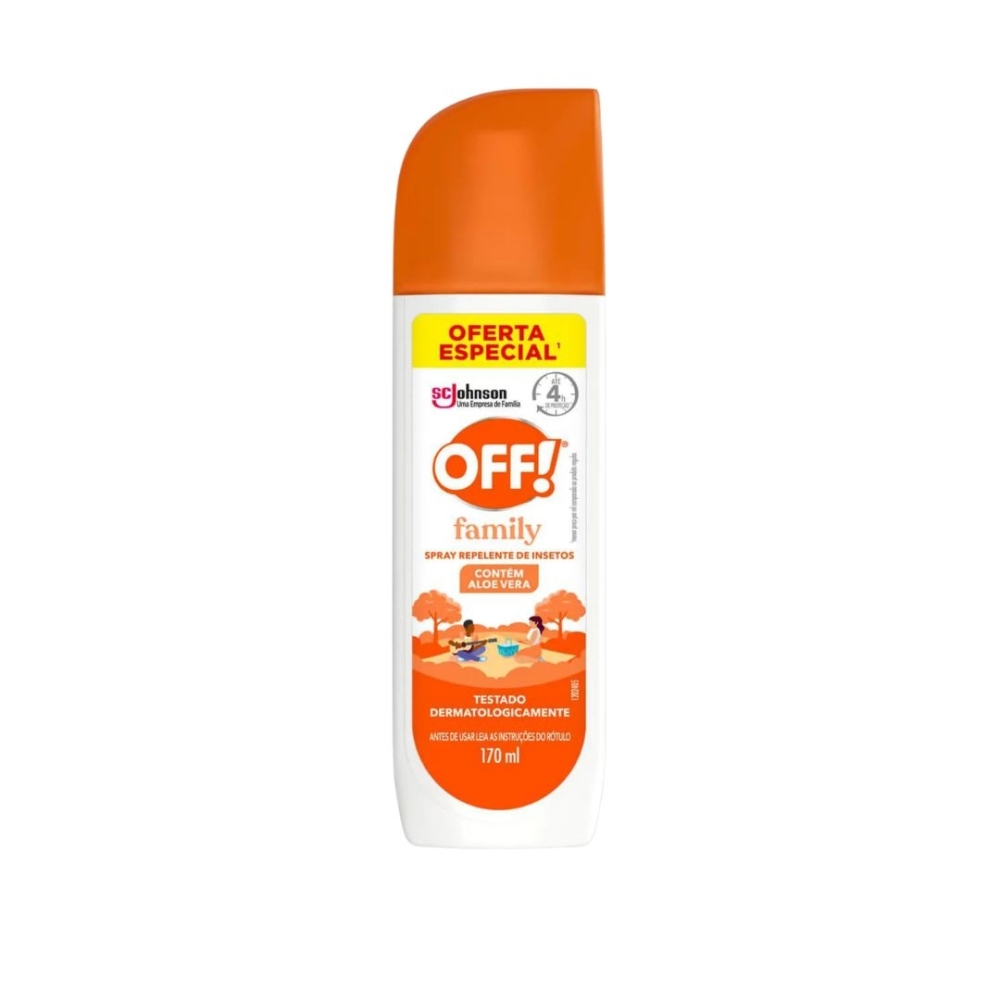 Descrição Geral O Repelente OFF! Family Spray 170 ml é um repelente de insetos corporal em formato spray, desenvolvido para proteção eficaz contra mosquitos e outros insetos em ambientes externos e no cotidiano da família. Sua fórmula leve, não oleosa e dermatologicamente testada proporciona conforto à pele durante a aplicação, com proteção por até cerca de 4 horas.