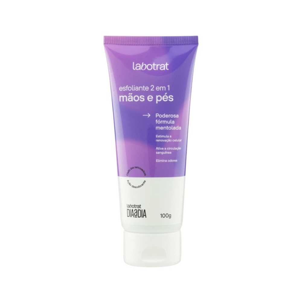 Especificações Técnicas Marca: Labotrat Linha: Dia a Dia Tipo de Produto: Esfoliante 2 em 1 para mãos e pés Volume: 100 g Textura: Cremosa com partículas esfoliantes Ação: Esfoliação, limpeza profunda e frescor mentolado Uso: Diário Origem: Nacional (Brasil)