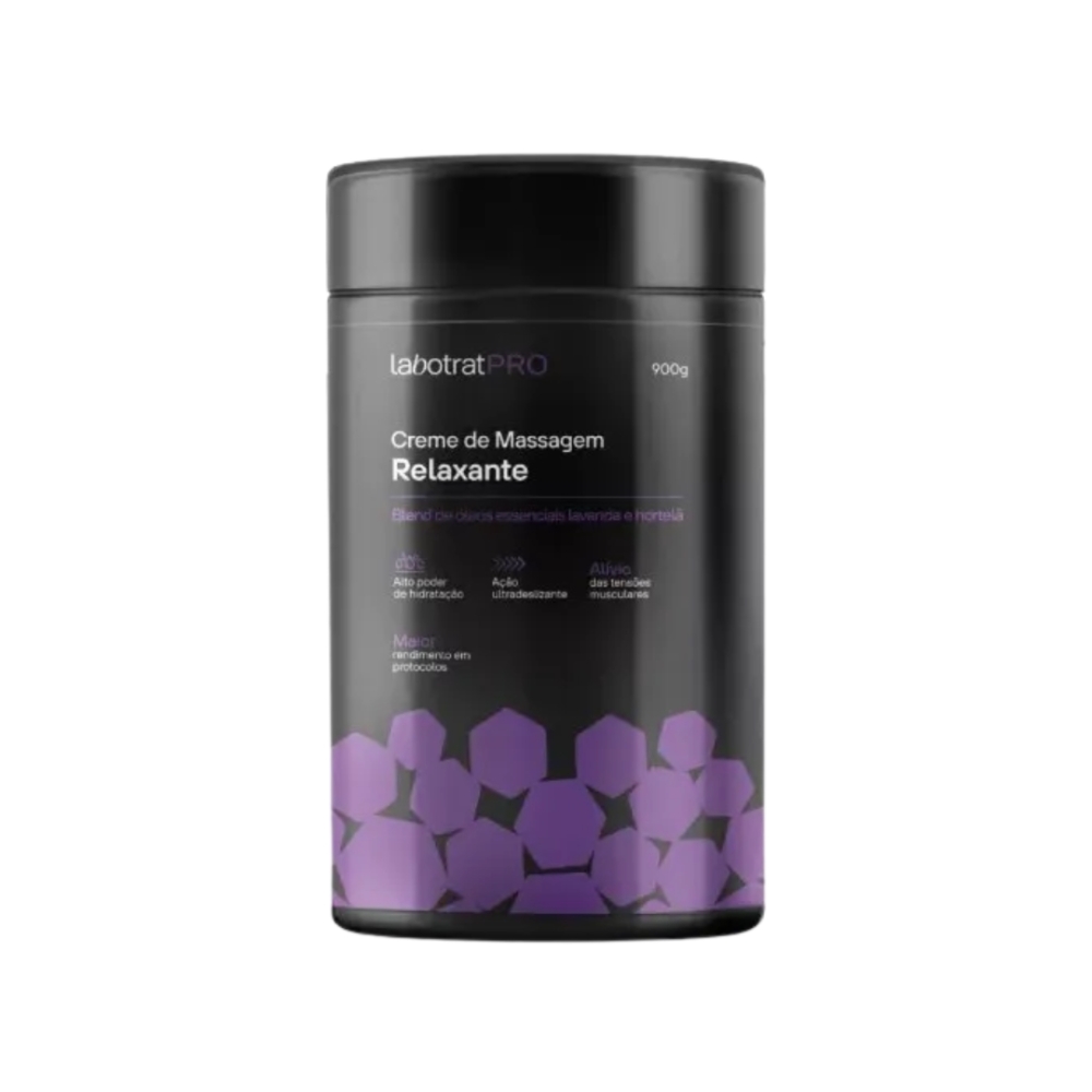 Especificações Técnicas Marca: LabotratPRO Categoria: Creme de massagem relaxante Peso Líquido: 900 g Ação: Relaxante, hidratante e desodorante Textura: Creme de alto deslizamento Uso: Corporal