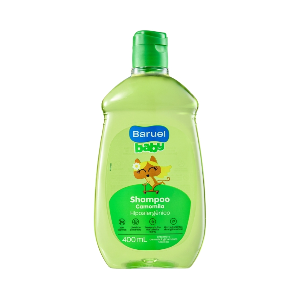 Descrição Geral Shampoo formulado com extrato de camomila e ingredientes suaves, desenvolvido para limpar delicadamente o couro cabeludo e os fios finos de bebês e crianças sem irritar, promovendo uma sensação de conforto e bem-estar durante o banho.