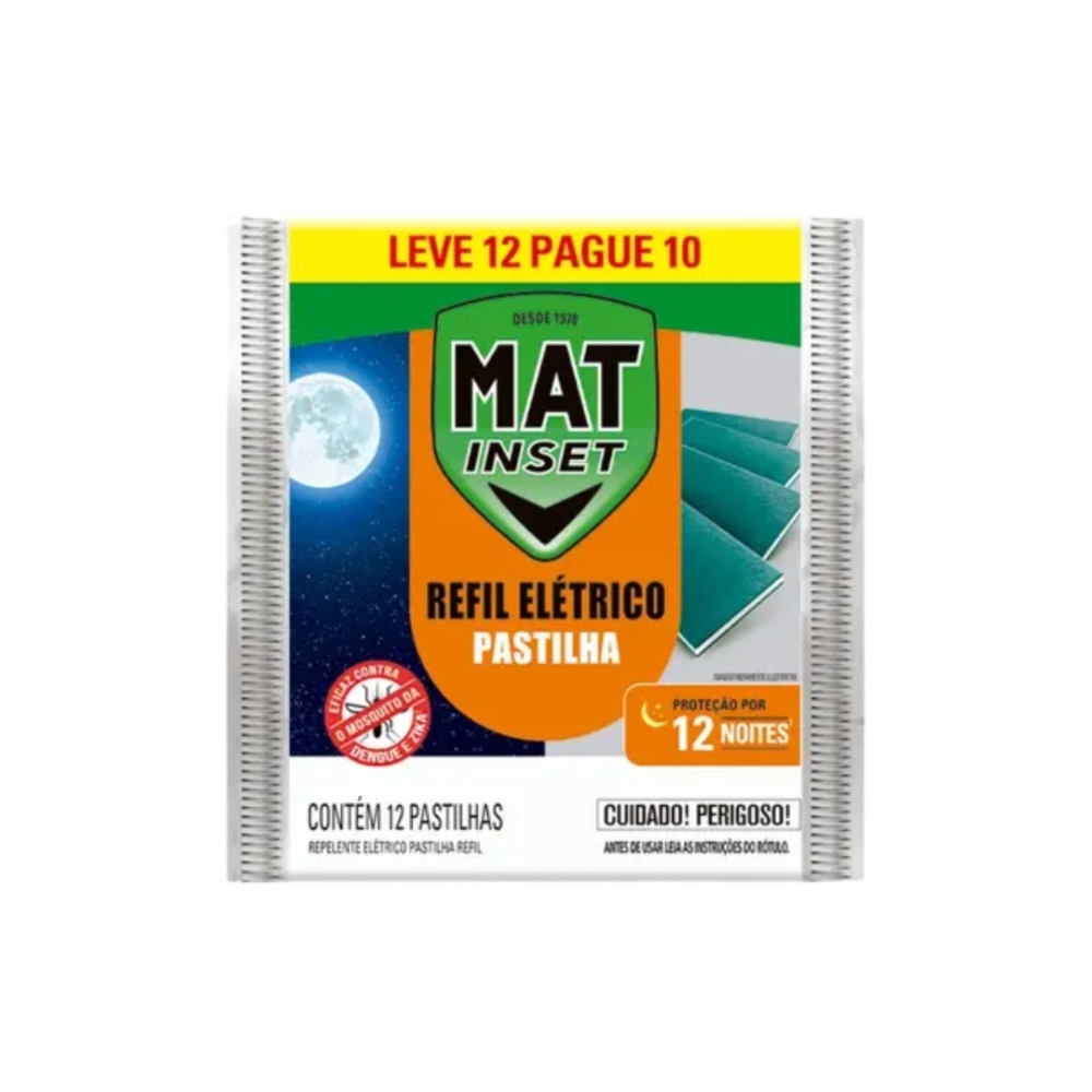Categoria: Refil para repelente elétrico Formato: Pastilha Duração do efeito: 12 horas por pastilha Quantidade na embalagem: 12 unidades