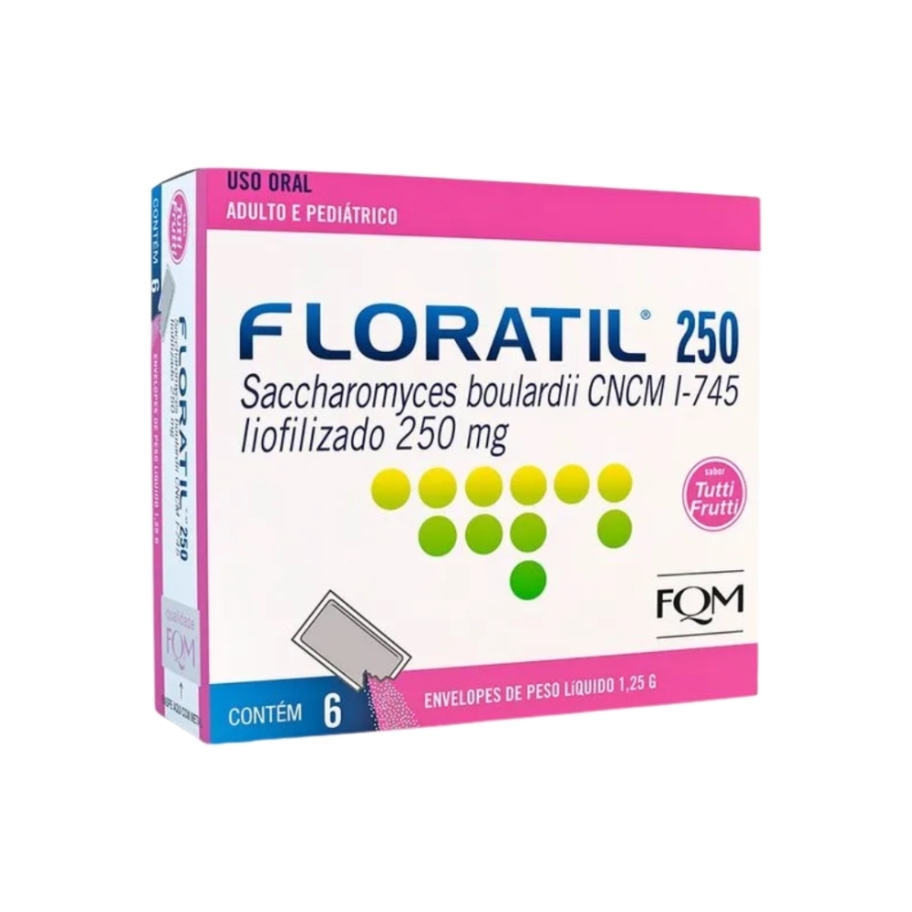 Descrição geral: Floratil AT 250 mg em cápsulas é um medicamento probiótico cuja substância ativa é Saccharomyces boulardii CNCM I-745, um microrganismo vivo benéfico que auxilia na prevenção e no tratamento de diarreias de diferentes causas, incluindo aquelas associadas ao uso de antibióticos ou quimioterapia. O produto também contribui para a restauração e o equilíbrio da flora intestinal, favorecendo o funcionamento saudável do sistema digestivo.
