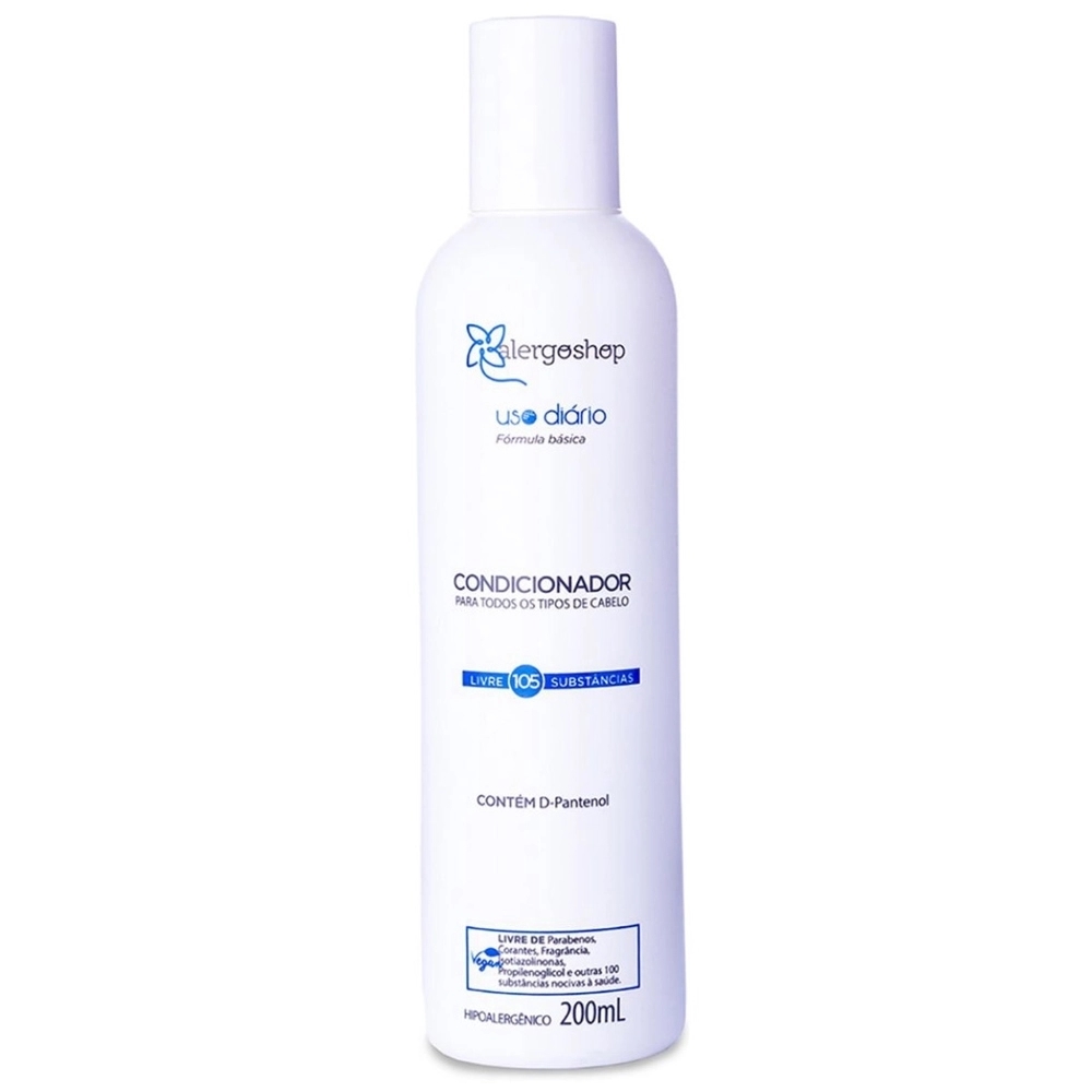 O Condicionador Uso Diário da Alergoshop, para todos os tipos e cabelo é indicado para usar no dia a dia e para pessoas alérgicas aos condicionadores comuns. Sua fórmula sem fragrância é indicada para pessoas com sinusite, rinite ou asma desencadeadas por perfumes.